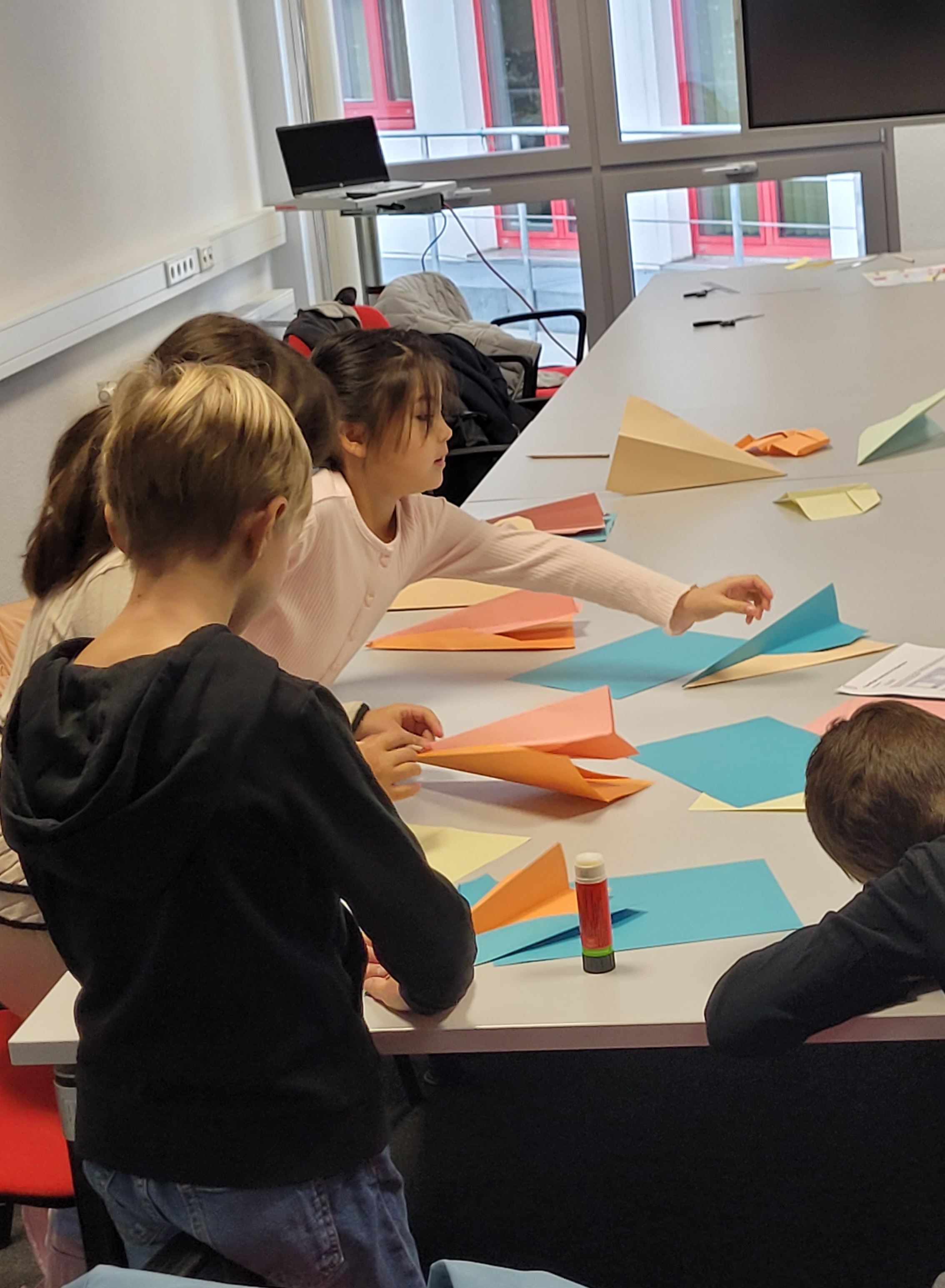 Im Anschluss durften die AquilaKids selbst Propeller sowie unterschiedliche Papierflieger basteln und damit herausfinden, wie sie funktionieren und warum das so ist. In spannenden Experimenten lernten die Kinder etwas über verschiedene Auftriebskräfte und Anziehung durch Luftströmung. Den Abschluss des interessanten Tages bildete ein gemeinsamer Versuch, einen Ballon steigen zu lassen.