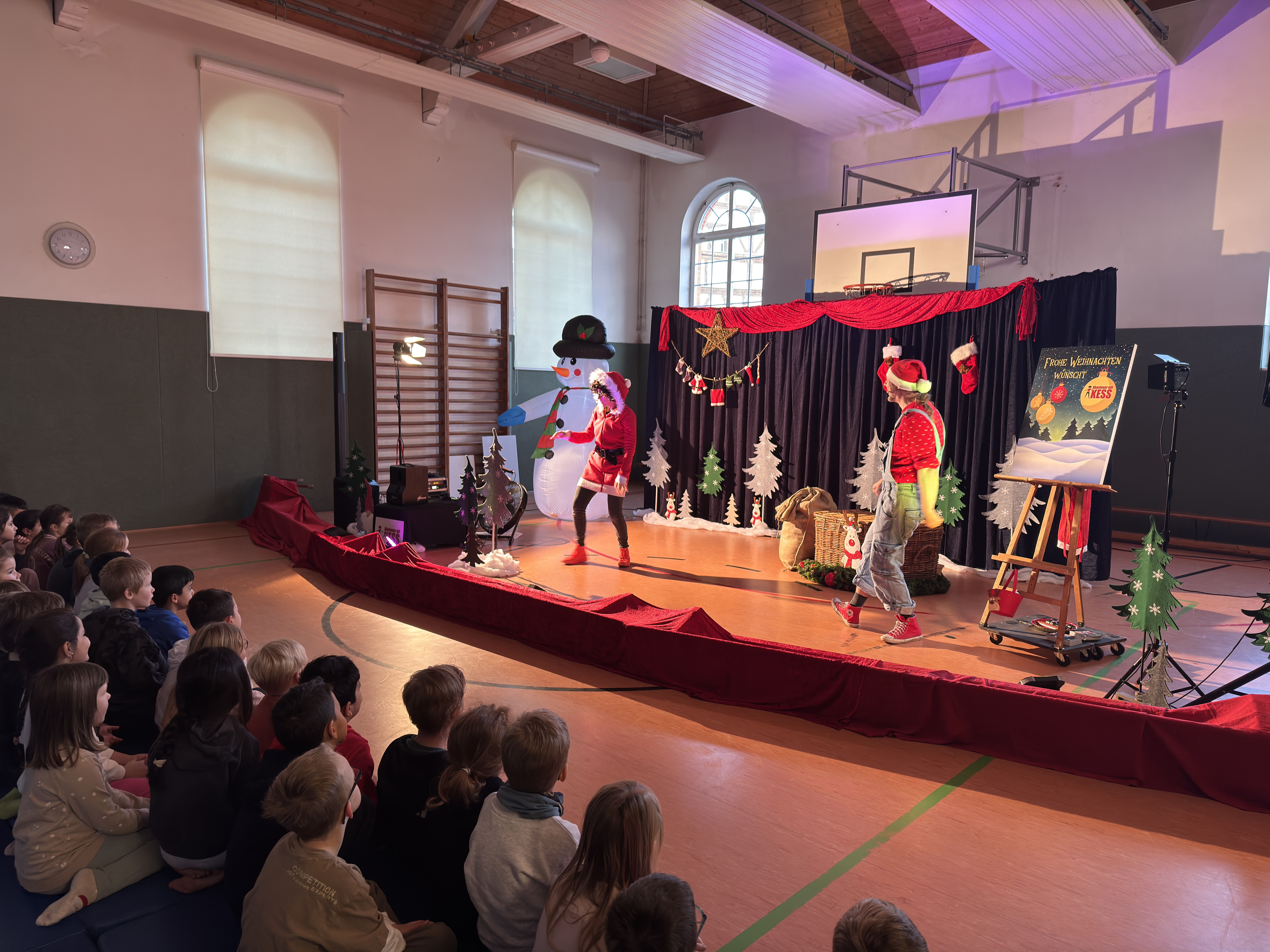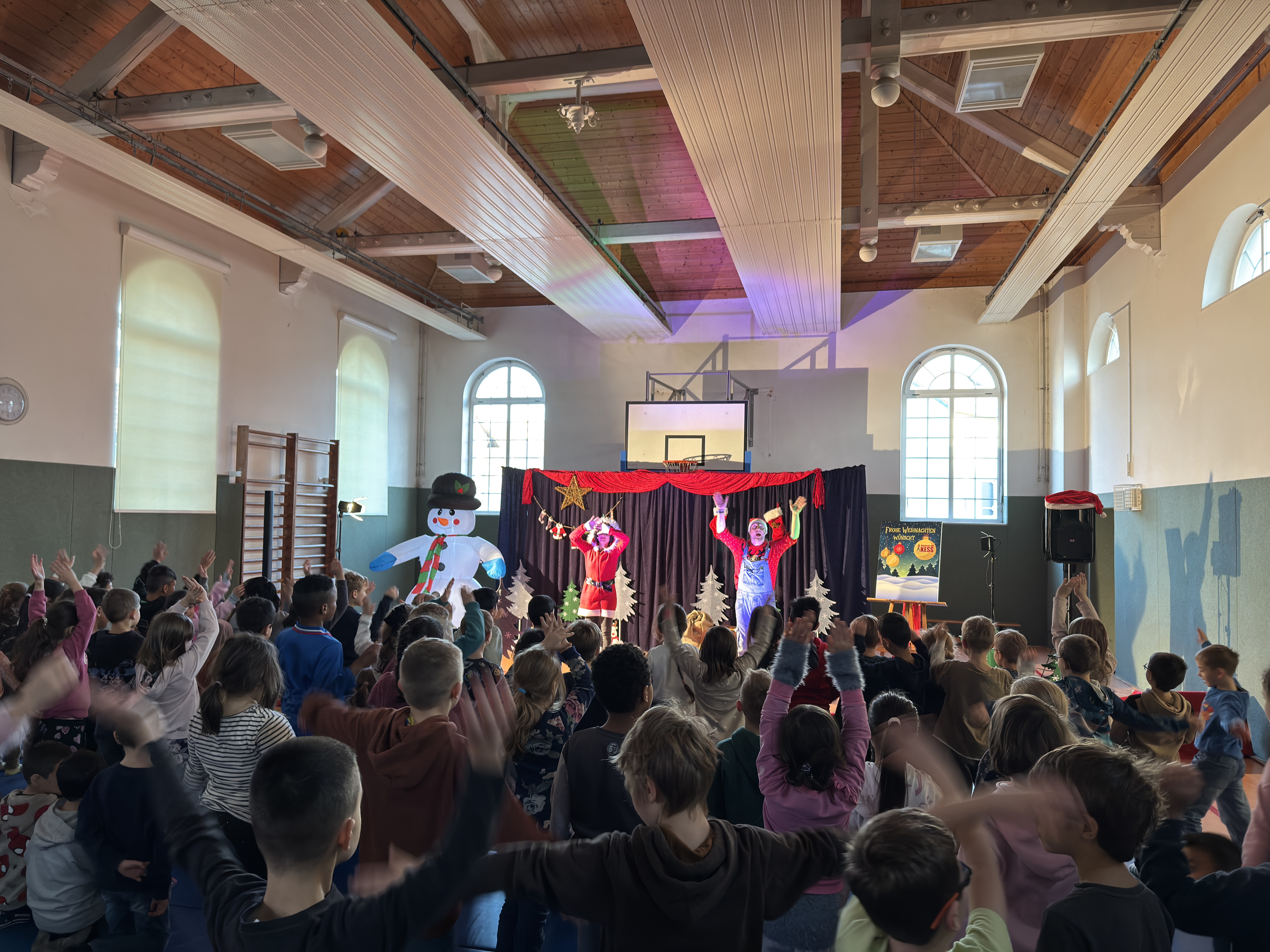 Heute war KESS bei uns zu Gast und sorgte mit dem weihnachtlichen Mitmach-Konzert „Weihnachtszeit im Märchenwald“ für strahlende Kinderaugen und eine fröhliche Stimmung in unserer Turnhalle.